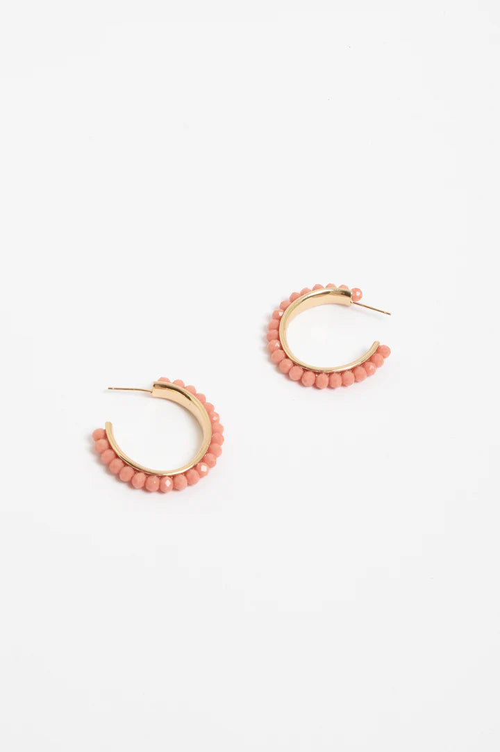 The Stone Edge Event Hoops in Pink are hoop earrings detailed with pink stones. Secured with a stud-back closure and crafted from stone and plated metal.