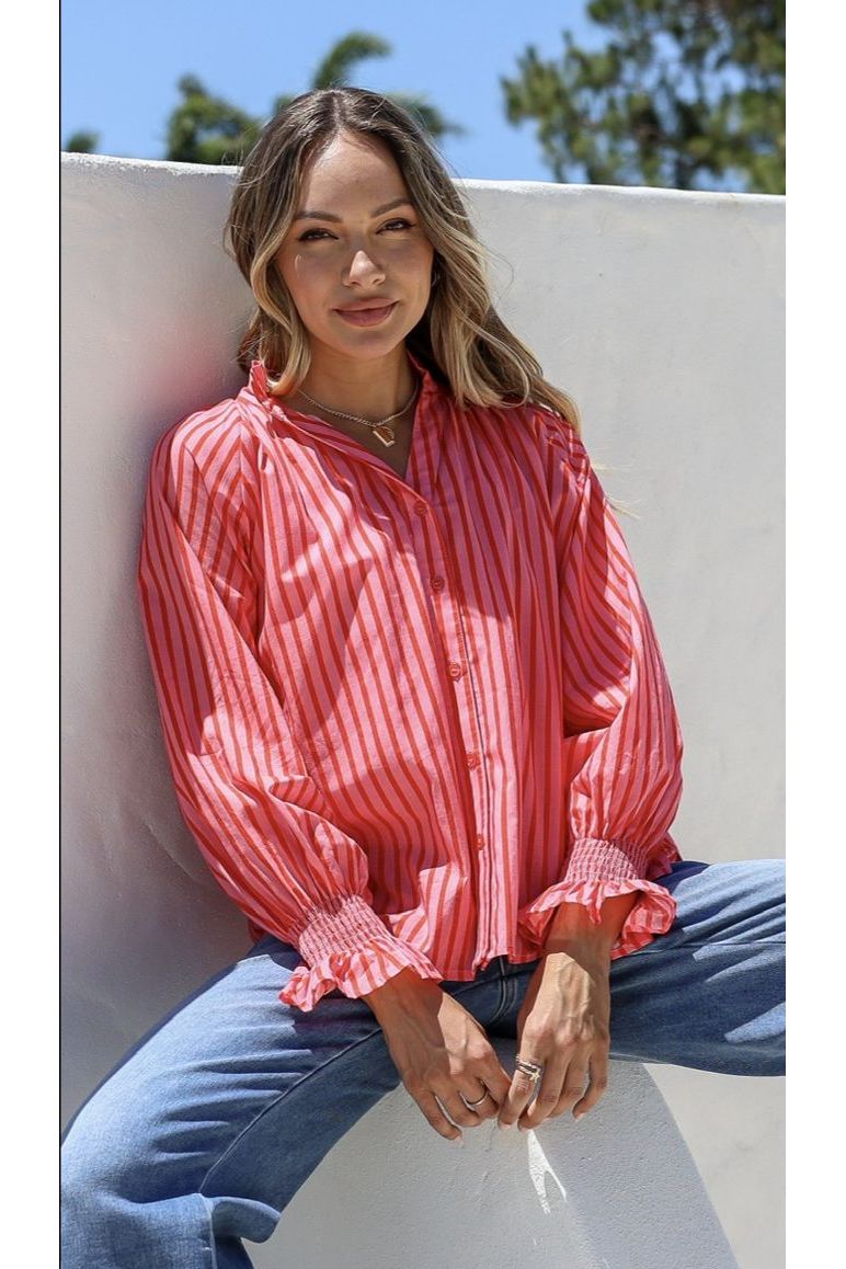 Harper + Co Sorrento Stripe Shirt Pink/Red
