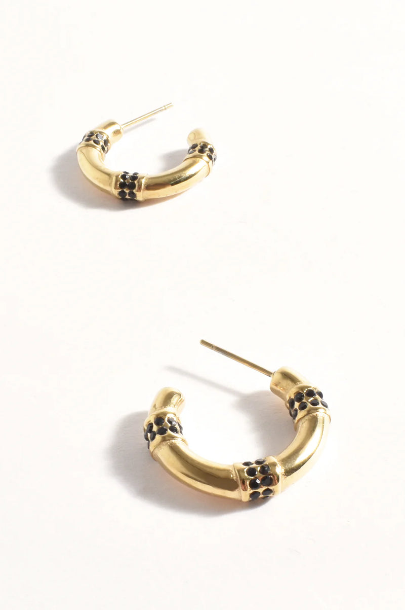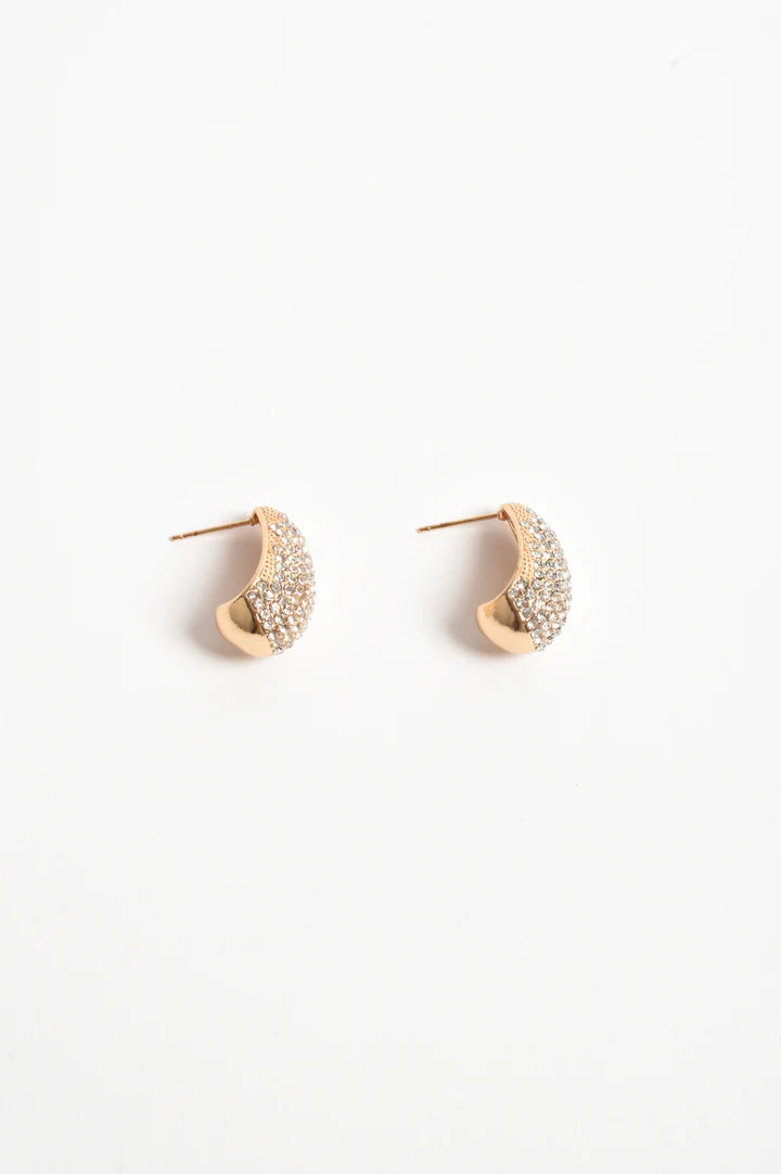 Adorne Stone Edge Diamante Mini Hoop Gold