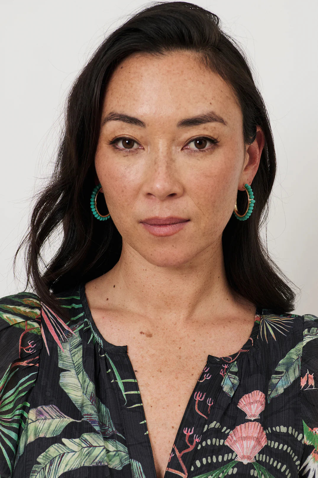 Adorne Stone Edge Hoops Green