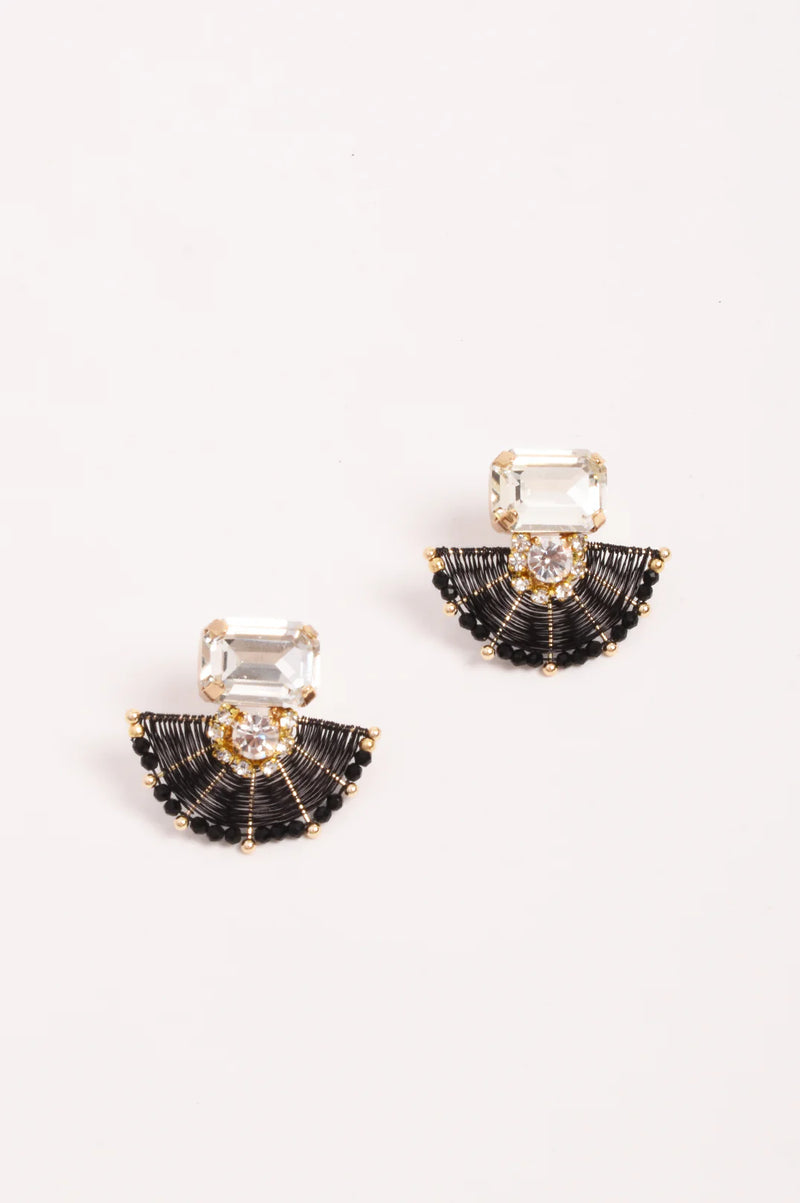 Adorne Glass & Bead Earring Black
